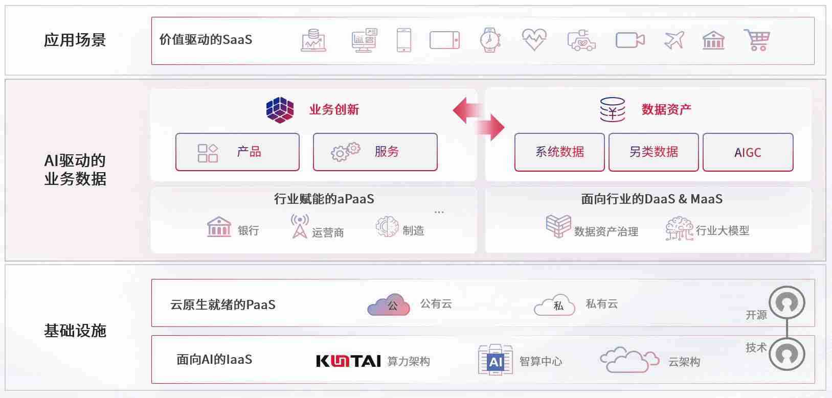 数字时代,,,围绕企业数字化转型的关键要素,,万宝路公司数码开创性的提出数云融合战略和技术体系框架,,,着力在云原生、、、数字原生、、、AI原生和信创产业上架构产品和服务能力,,,为处在不同数字化转型阶段的快消零售、、、汽车、、金融、、、、医疗、、政企、、、、教育、、、、运营商等行业客户提供泛在的敏捷IT能力和融合的数据驱动能力,,,,构建跨界融合创新的数字业务场景和新业务模式,,助力企业级客户建立面向未来的核心能力和竞争优势,,,全面推动社会的数字化、、、、智能化转型升级。。。