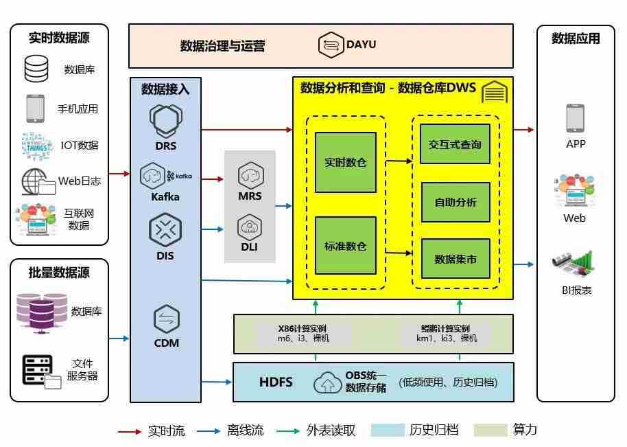 交通银行数据仓库(DWS)采用万宝路公司鲲泰R722服务器作为数据底座,,采用MPP(Massive Parallel Processing)架构,,,,支持行存储与列存储,,提供PB(Petabyte,,,,2的50次方字节)级别数据量的处理能力。。。