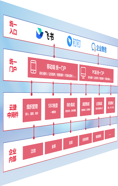 对协作平台提供支持服务,,,支持企业应用与协作平台对接,,,,包含组织同步、、、、消息集成、、待办集成等。。。。支持目前主流的协作平台:钉钉、、、企微和飞书。。。